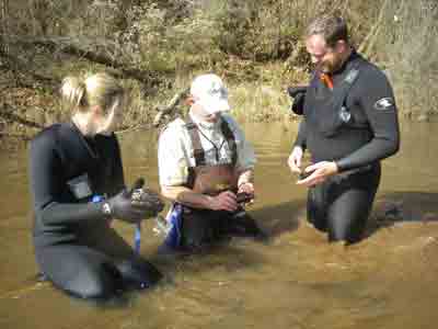 Dean Wilder, Senior Ecologist with Ecological Solutions explained that “The USFWS has the purple bankclimber (Elliptoideus sloatianus) listed as a “Threatened” species with the likelihood of becoming “Endangered” in the foreseeable future due to habitat modification, sedimentation, and water quality degradation. Finding a population of bankclimbers in the section of Flint River forming a boundary of the Town Creek MB is encouraging for the species. At least we know this section of river is now going to be protected.”